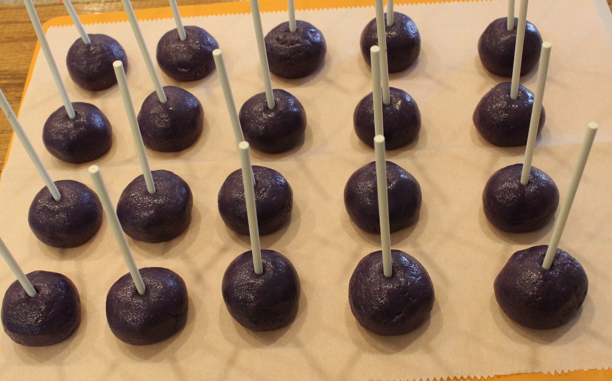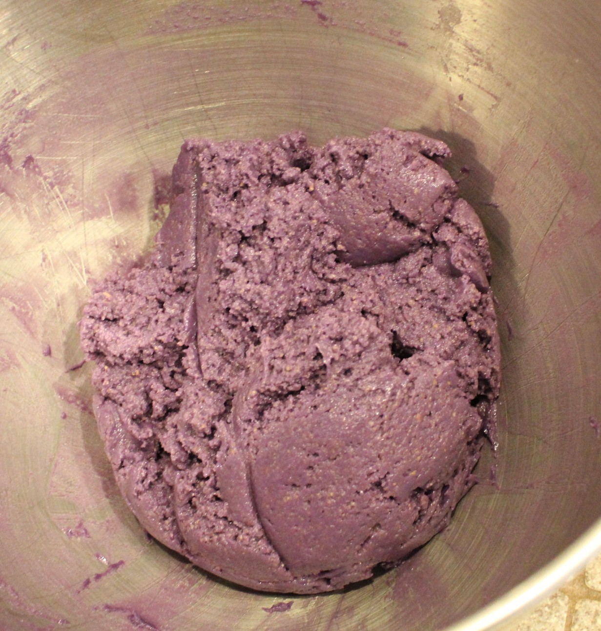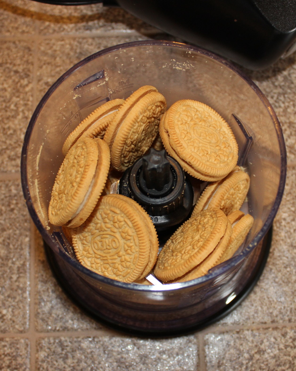 If you are using Golden Oreos you can dye them different colors. You will need to use quite a bit of food coloring to overcome the yellow color of the cookie. I usually start with about a quarter of a teaspoon and go from there. I use Wilton brand gels; for baking, they are my absolute favorite. They don’t streak like the powders and they don’t change food’s consistency like liquids can. Add the food coloring before you mix the crumbs and cream cheese together. In the picture above you can see the blobs of purple food dye in the bowl. IMG_1668 Turn your mixer on low until most of the crumbs are mixed into the cream cheese and then raise the speed to medium until you have a consistent mixture throughout. This whole process will take about a minute. Like I said, fast and simple.
