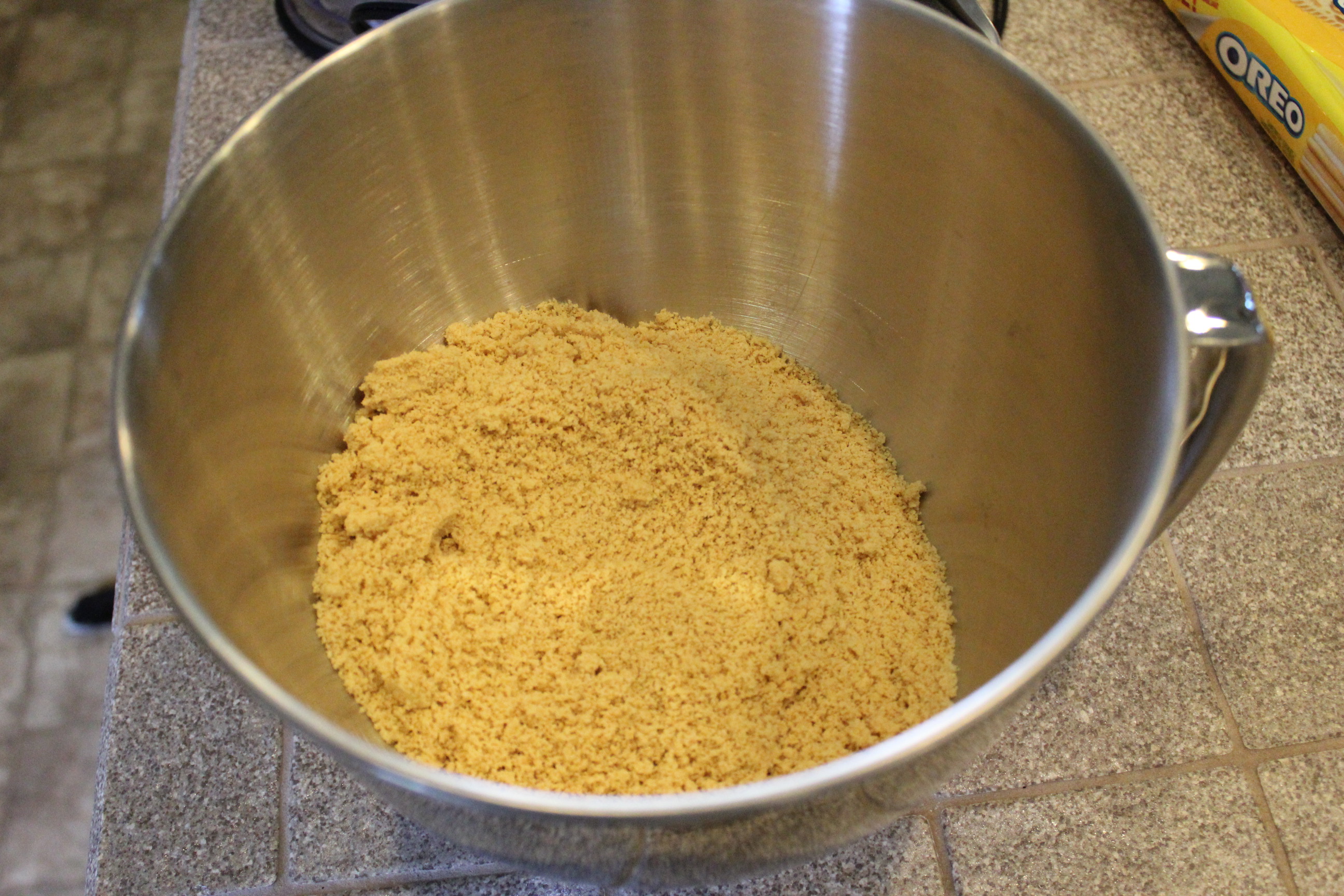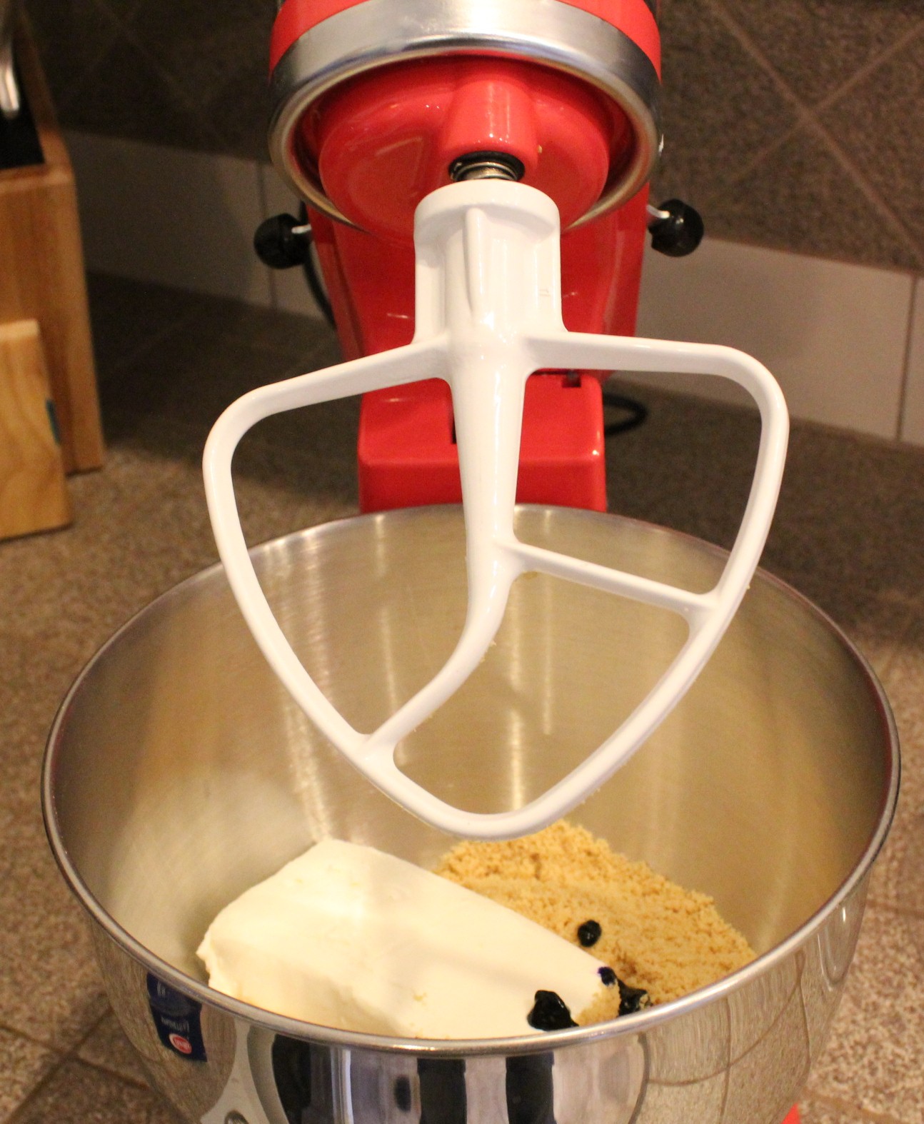 I grind up my Oreos in a food processor, but you can just as easily crush them in a Ziploc bag. In fact that’s the preferred method if you’re having a bad day and need to relieve some stress. I like the food processor because they come out much finer, and give it a great texture. IMG_1667 Next, simply mix the crumbs with the cream cheese. You don’t need a mixer, you can just use your hands, but the mixer is faster and neater. In case you’re wondering, my mixer is named Sir Mix-a-Lot. If you do use a mixer, please for the love of baking, use the right attachment. The funny looking flat one in the picture is correct. The whisk that most people try to use for everything will end in sadness when your entire ball of dough ends up inside the attachment and you have to slowly poke it out piece by piece with a butter knife.